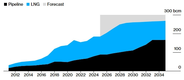 截至目前,“西伯利亚力量-2”项目的诸多细节尚未公布,但彭博新能源财经估计该管道可能在2030年后启动。据预测,到2030年代初,俄罗斯天然气可能占中国需求的20%,高于目前的约10%。