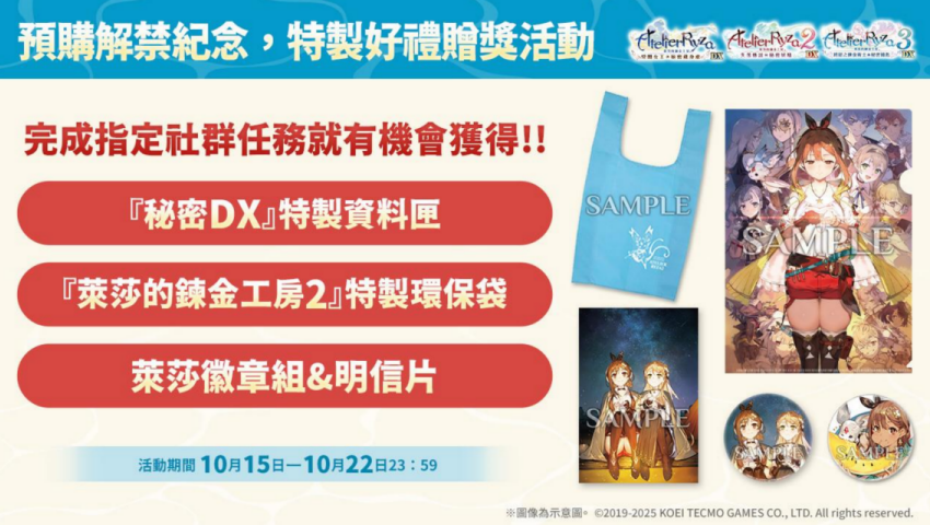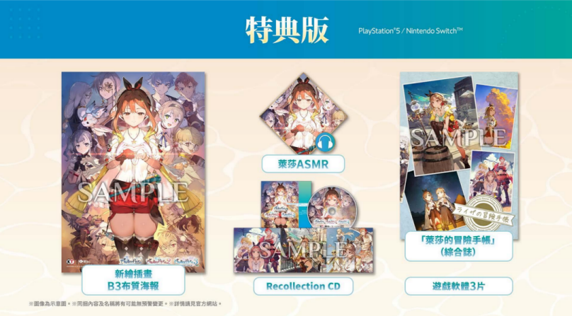 ※『莱莎的炼金工房 DX』、『莱莎的炼金工房2 DX』、『莱莎的炼金工房3 DX 』各作品取得特典所需的存档资料 .以及可获得的特典内容皆不同。